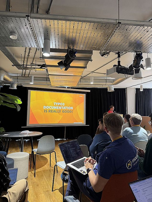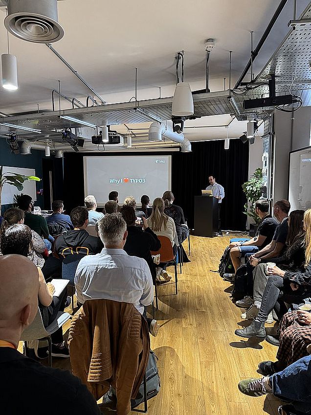 Pour terminer la journée, Daniel Fau de la société TYPO3 nous a donné un aperçu du projet de création de site du gouvernement allemand (GSB11) et nous a également fourni une mise à jour plus large sur ce qui se passe dans la communauté TYPO3 au sens large.